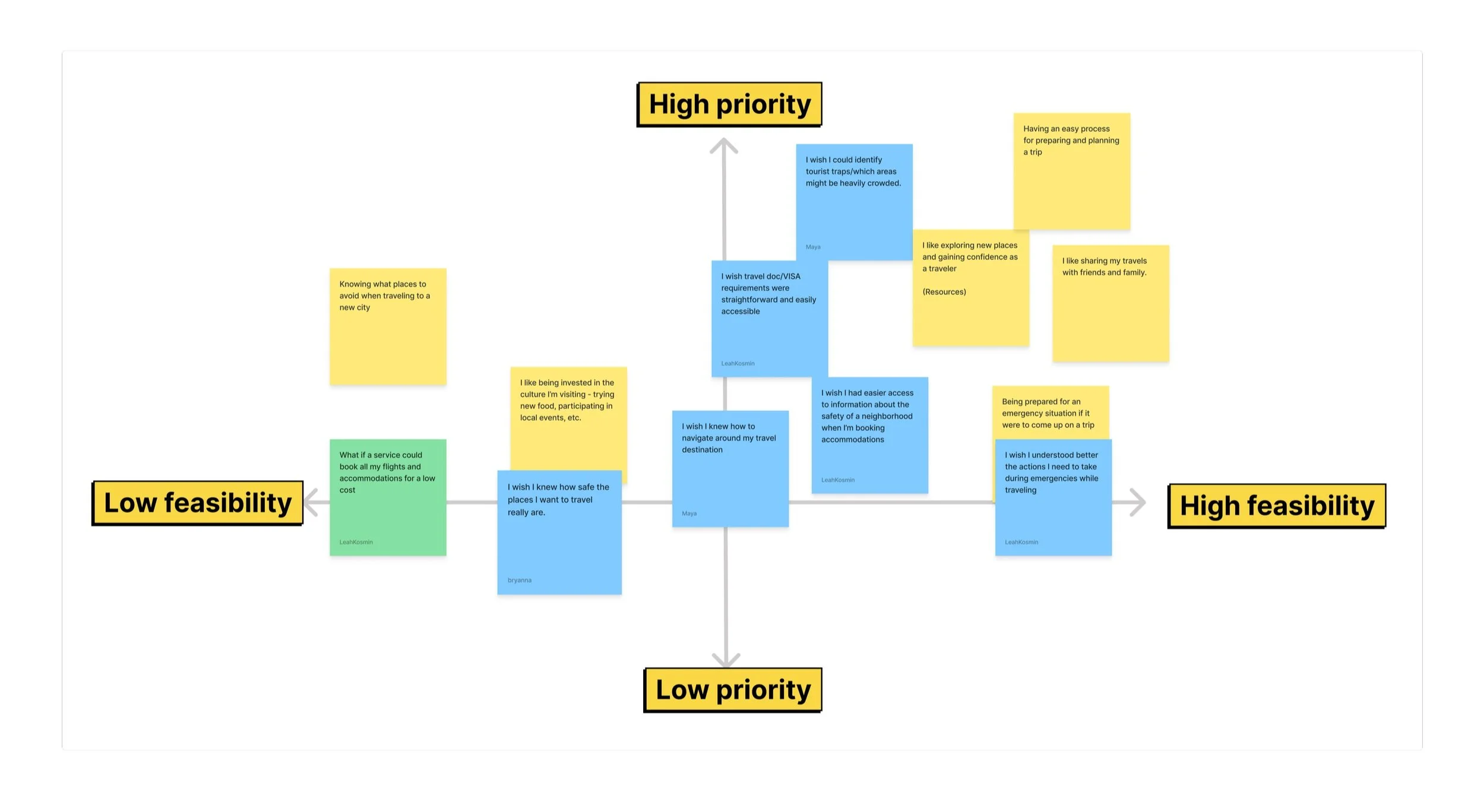 Through our survey, we found that one of the biggest things our users do to feel safe on trips is share their travel plans with friends and family. We also found that almost all of our users prefered to travel with family or a partner instead of by themselves. Overall, we concluded that travelers depend on their loved ones and family members not only for planning, but also for feeling safe while they’re abroad.